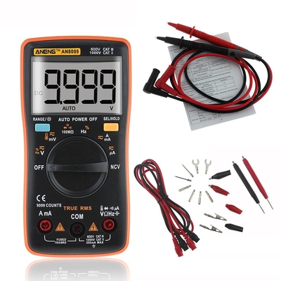 Spécification: Couleur orange Une fonction Intervalle Résolution Précision MAX. Valeur Autre Tension continue (V)999.9m V0.1m V± (0, 5% + 3)999.9V 9.999V0.001V99.99V0.01V999.9V0.1 V Tension continue (m V)9.999m V0.001m V99.99m V99.99m V0.01m V Tension CA (V)999.9m V0.1m V± (1, 0% + 3)750V40 Hz-1k Hz 9.999V0.001V99.99V0.01V750.0V0.1 V Tension CA (m V)9.999m V0.001m V99.99m V99.99m V0.01m V Courant DC (m AA)999.9m A0.1m A± (1, 0% + 3)9.999A 9.999A0.001 A Courant DC (μA)99, 99μA0, 01μA± (0, 8% + 3)999, 9μA999, 9μA0.1μACourant alternatif (m AA)999.9m A0.1m A± (1, 2% + 3)9.999A40 Hz-1k Hz 9.999A0.001 A Courant alternatif (μA)99, 99μA0, 01μA± (1, 0% + 3)999, 9μA999, 9μA0.1μALa résistance 99.99Ω0.01Ω± (1, 0% + 3)99, 99 MΩ 999, 9Ω0.1Ω± (0, 5% + 3)9.999kΩ0, 001 kΩ99.99kΩ0, 01 kΩ999.9kΩ0.1kΩ9, 999 MΩ0, 001 MΩ± (1, 5% + 3)99, 99 MΩ0, 01 MΩ Une fonction Intervalle Résolution Précision MAX. Valeur Autre Capacitance 9.999n F0.001n F± (5, 0% + 20)9.999m F 99.99n F0.01n F± (2, 0% + 5)999.9n F0.1n F9.999μF0.001μF99.99μF0.01μF999.9μF0.1μF9.999m F0.001m F± (5, 0% + 5) La fréquence 99.99 Hz 0.01 Hz± (0, 1% + 2)9.999 M Hz 999.9 Hz 0.1 Hz 9.999k Hz 0.001k Hz 99.99k Hz 0.01k Hz 999.9k Hz 0.1k Hz 9.999 M Hz 0.001 M Hz Cycle de service 1% ~ 99%0, 1%± (0, 1% + 2) Diode√ Continuité√PCI√ Température-20 ~ 1000 ℃1 ℃± (2, 5% +5)1000 -4 ~ 18321 ℉1832 Spécifications générales LCD affichage 9999 Counts Variant Auto / Manuel Matériel ABSTaux de mise à jour 3 fois / seconde Ture RMS√Rétro-éclairage√ Maintien de données√ Alerte Batterie√ Arrêt automatique√ Spécifications mécaniques Dimension 130 x 65 x 32mm Poids 114g Batterie Type 2 x 1, 5 V AAA Batteries (N