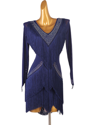 Costume de danse latine bleu femmes strass frange moulante Sexy robe en Polyester vêtements de danse & Déguisement > Costume > Costumes de Danse > Costumes de danse latine ...