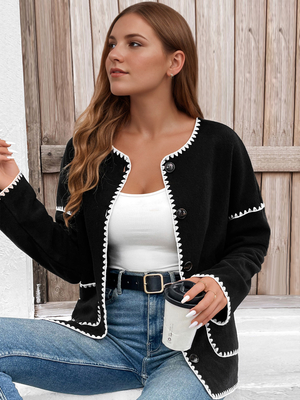 Veste Femme Col Rond Boutons Polyester Bicolore En Poches Décontractée & Mode Femme > Vestes et Manteaux > Vestes Femme