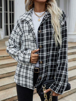 Veste Imprimé Carreaux Femme à Col Revers avec Manches Longues avec Boutons Bicolores Veste Femme & Mode Femme > Vestes et Manteaux > Vestes femme