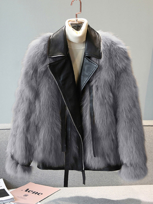 Veste Manteau Femme Hiver à Col Revers à Fausses Fourrures Synthétiques avec Manches Longues Bimatières à Cuir Synthéqtiue Courte Manteau Veste Femme & Mode Femme > Vestes et Manteaux > Manteaux fausse fourrure