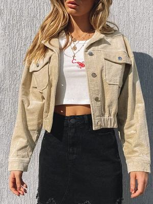 Veste Manteau Femmes Courte En Velours Côtelés à Col Revers Avec