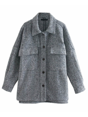 Veste Manteau Femmes Hivers à Col Revers Imprimé avec Carreaux avec Manches Longues Fermeture avec Boutons avec Poches Bicolores & Mode Femme > Vestes et Manteaux > Vestes femme ...