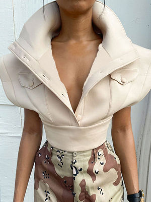 Veste Taille Haute Femme à Col Montant à Zip avec Manches Courtes Unicolore Veste Femme & Mode Femme > Vestes et Manteaux > Vestes femme