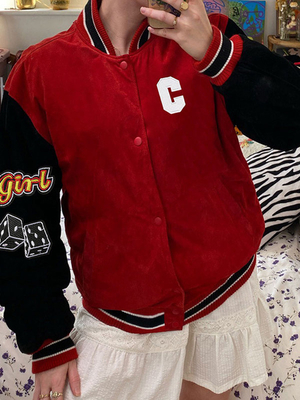 Surdimensionné Bouton Avant Casual Field Veste De Baseball Rouge