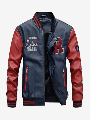 Vestes en cuir pour hommes Vestes aviateur à manches longues et à blocs de couleurs & Mode Homme > Vestes & Manteaux Homme > Vestes En cuir Homme