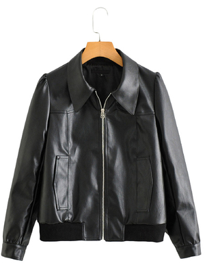 Vestes Manteau Moto Femmes à Cuir Synthétique Cousu Fausse Fourrure à Col Revers avec Manches Longues avec Poches Unicolore & Mode Femme > Vestes et Manteaux > Vestes Femme ...