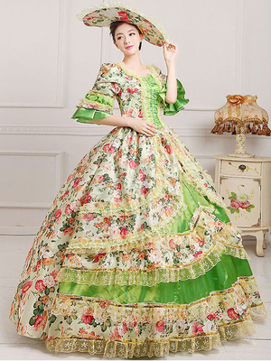 Victoria Robe Costume Rococo Femmes Désuisement Vintage robe boule Floral imprimé robe avec chapeau Déguisements Halloween & Déguisement > Costume > Costumes Vintages > Retro Costumes Pour Femme
